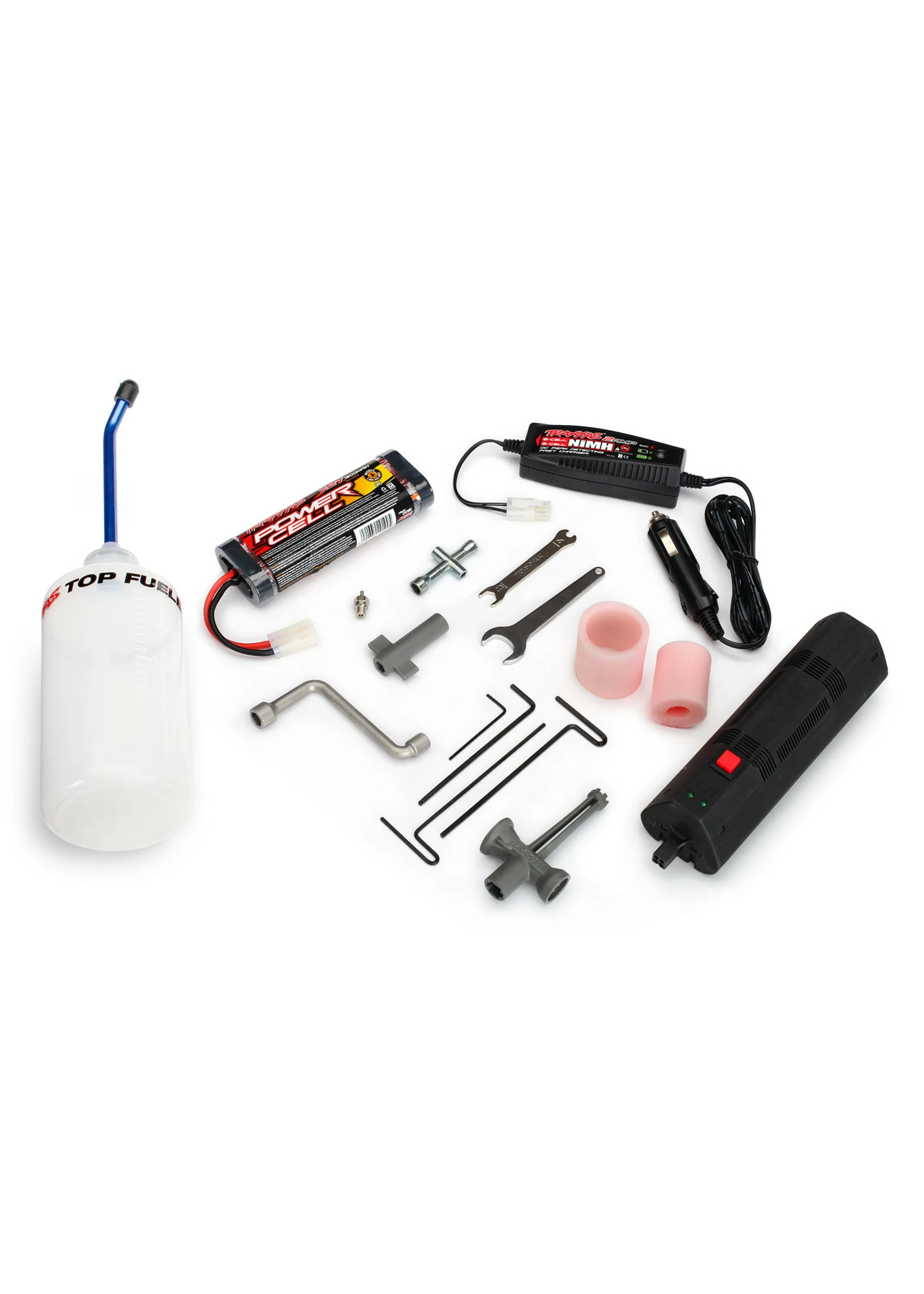 - Ready-To-Drive® with included NiMH receiver pack and EZ-Start® battery, 2-amp DC Peak Detecting Fast Charger, fuel-filler bottle, spare glow plug, precision tools, and more!