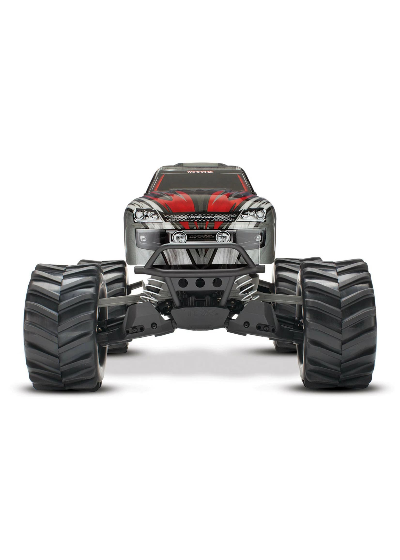 Stampede 4X4 is built on the proven performance of the advanced shaft-driven 4WD system and innovative modular design of the award-winning Slash 4X4. The chassis fully integrates the electronics and battery compartment for an efficient and compact layout, and maintains the high center ground clearance that gives Stampede its monster stance and high-riding look. The extra clearance drastically increases the off-road versatility that allows you to tackle rougher terrain and bigger obstacles. The Stampede 4X4 feels planted and secure at speed, even on pavement and in other high-grip conditions. Stampede 4X4 is 100% monster truck, but it handles like a racing machine!