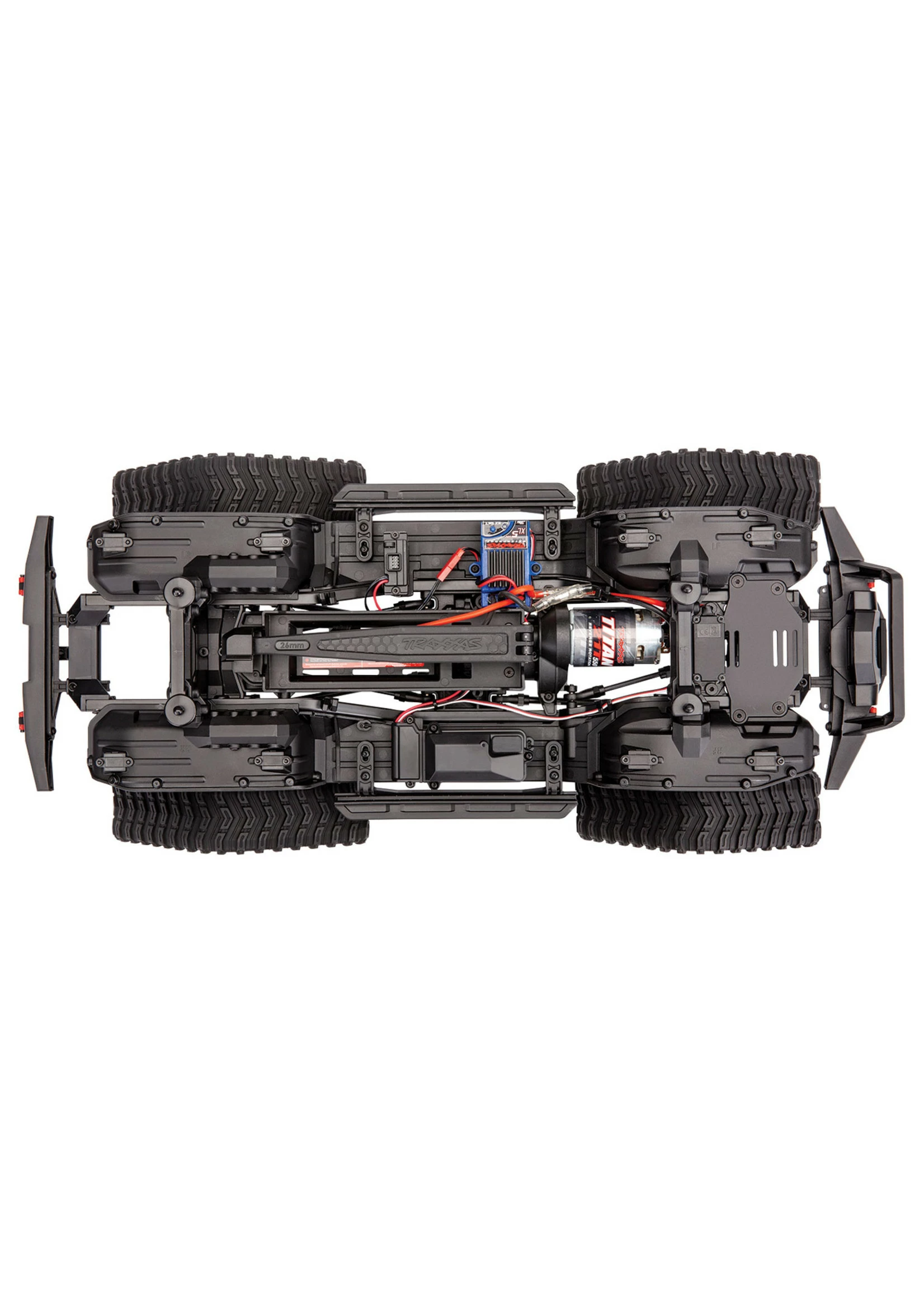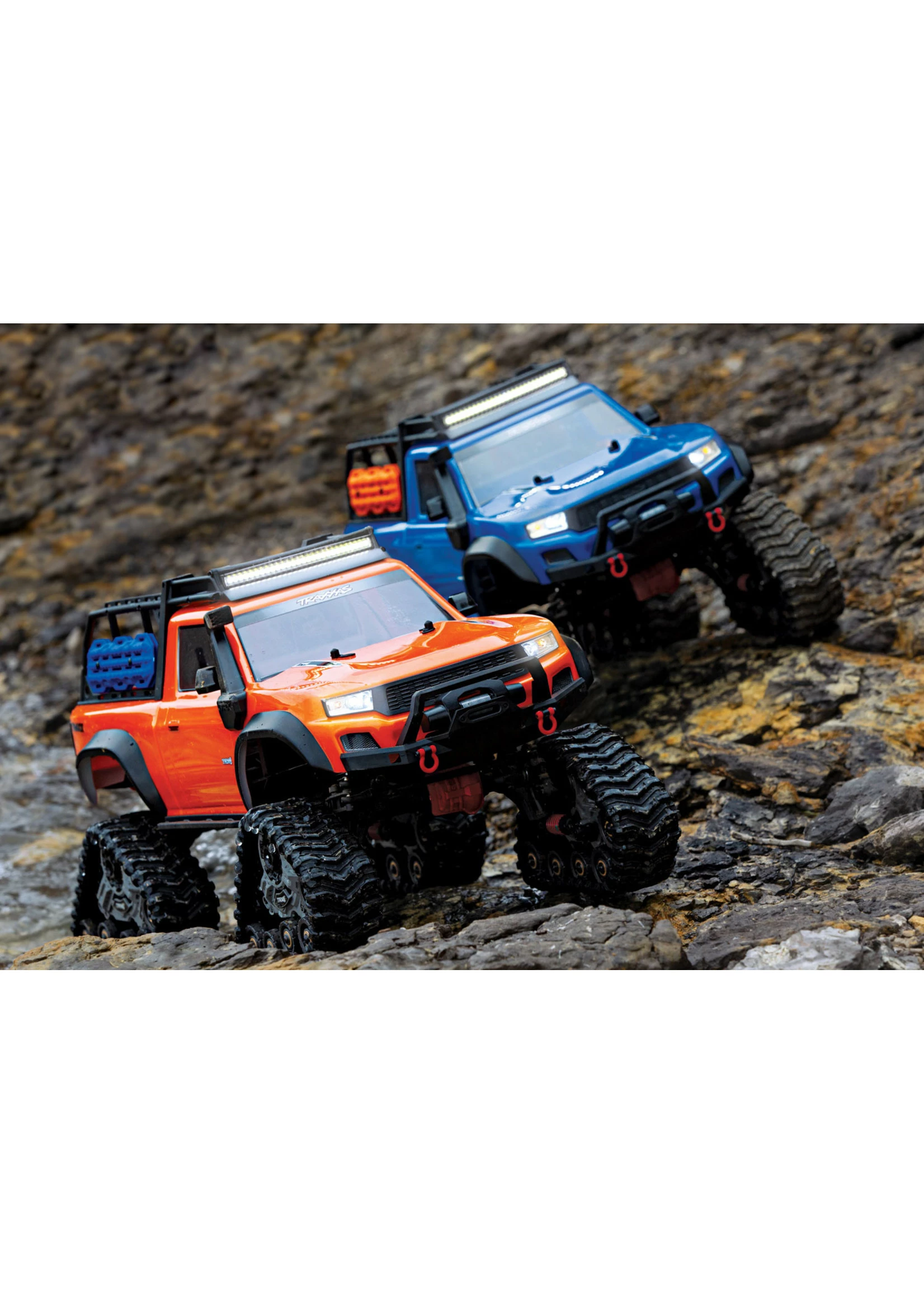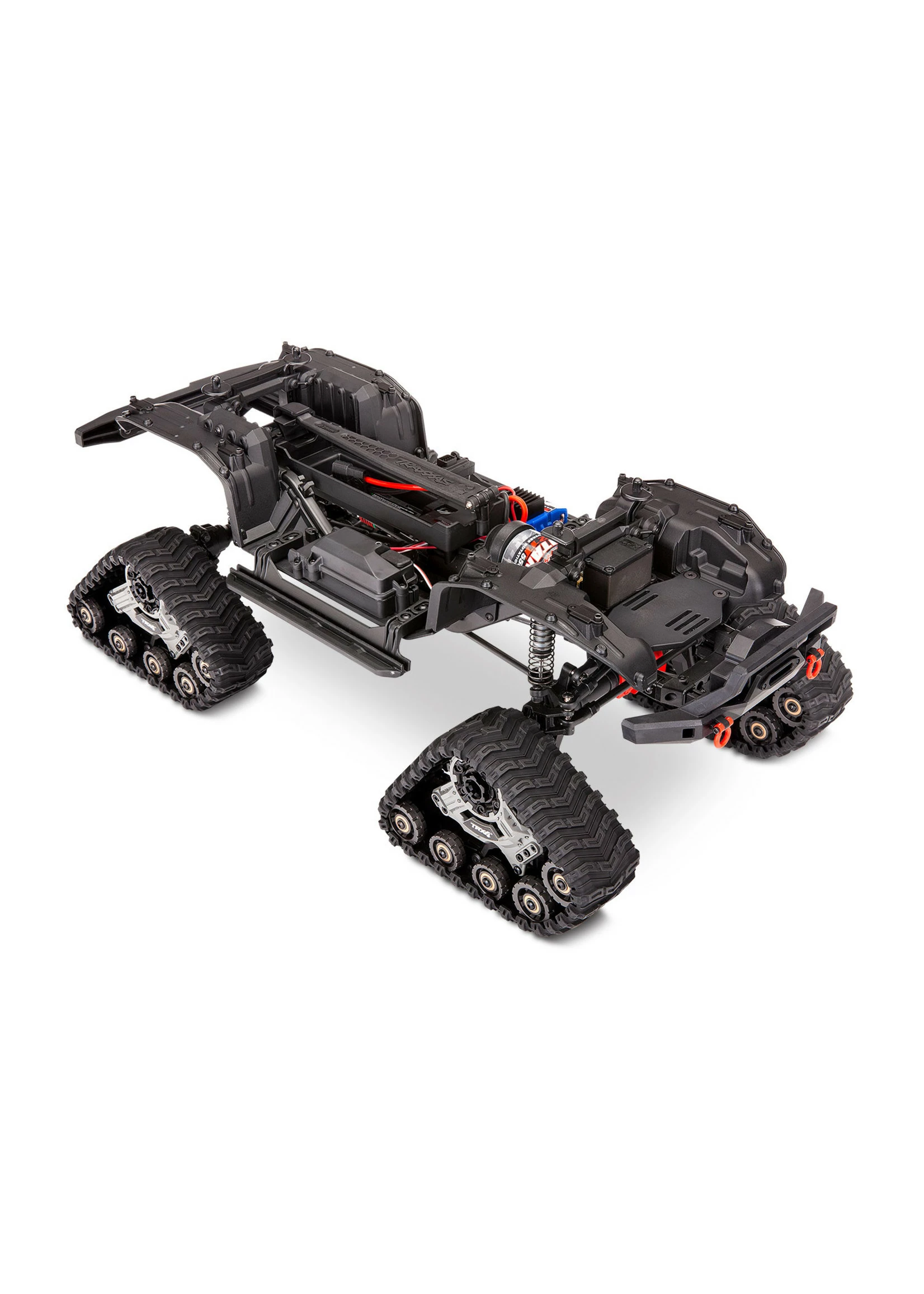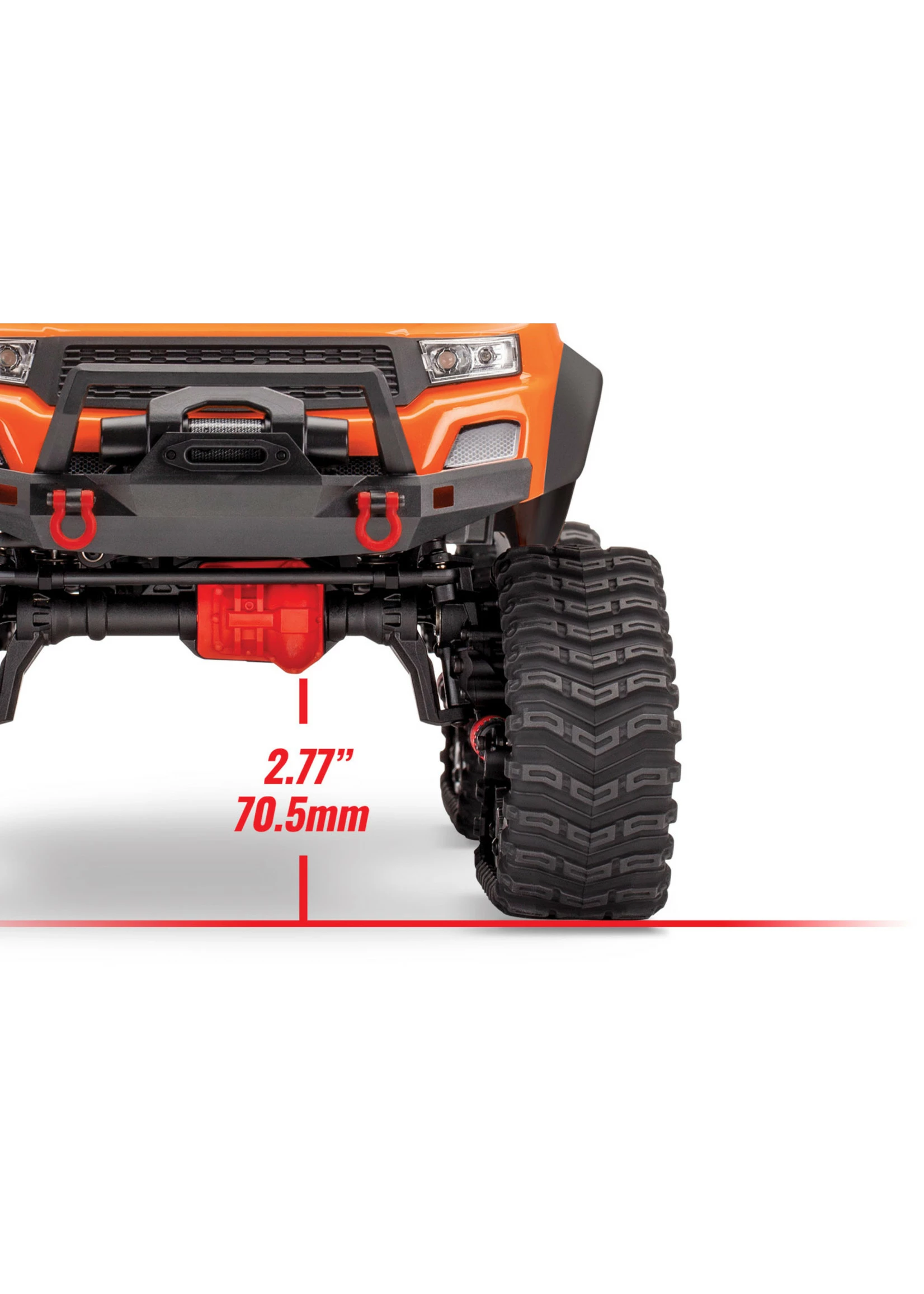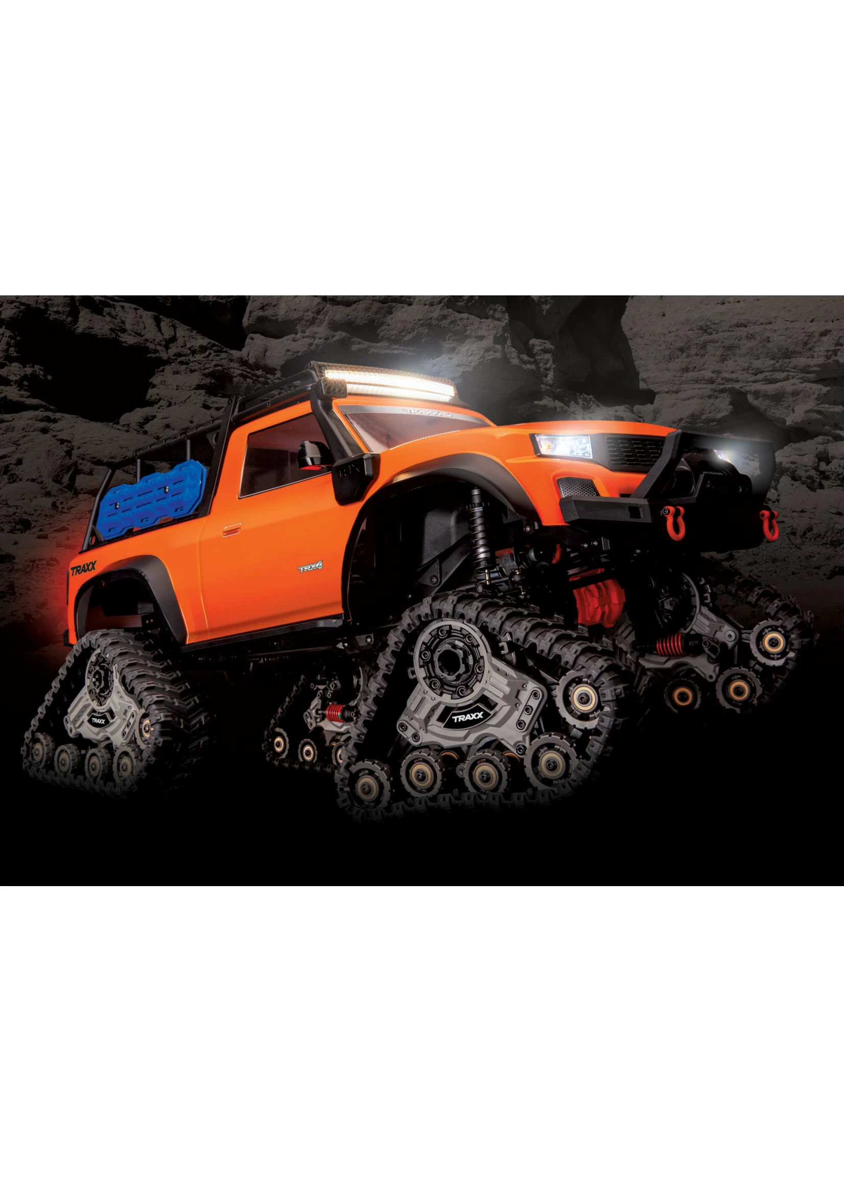 Outfitted with Traxx, the TRX-4 transforms into an all-terrain monster. The enormous contact patch and grippy treads shrug off the deepest mud and float across sand. Traxx’ increases ground clearance and approach angles to let you straddle even larger obstacles and climb steeper grades without breaking a sweat.