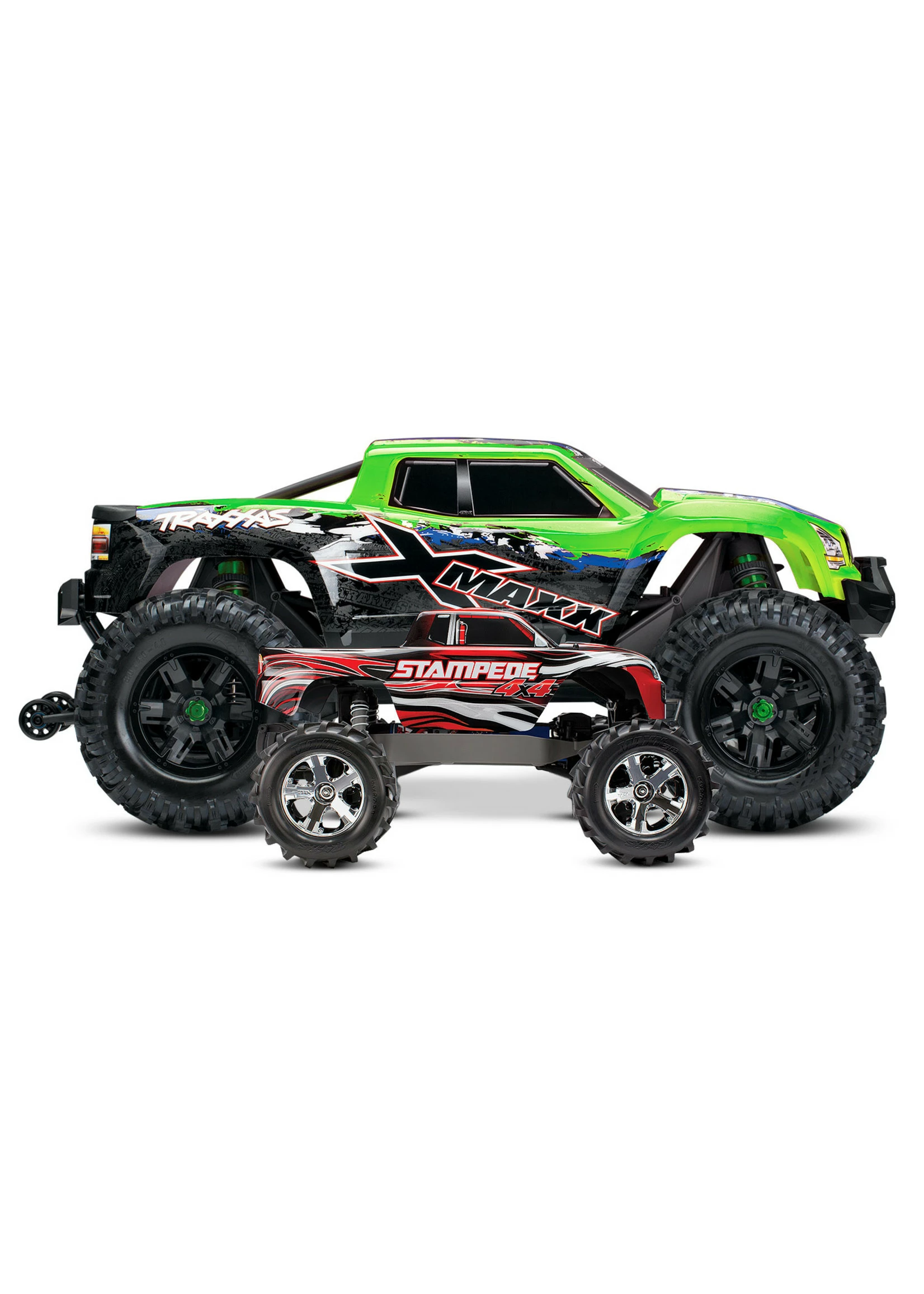 At the end of the day, size always wins. X-Maxx plows over obstacles and muscles through extreme terrain that leaves lesser trucks stranded. Mammoth 8-inch tall tires, long-arm suspension, and huge ground clearance dwarf the surroundings for virtually unstoppable monster truck fun.