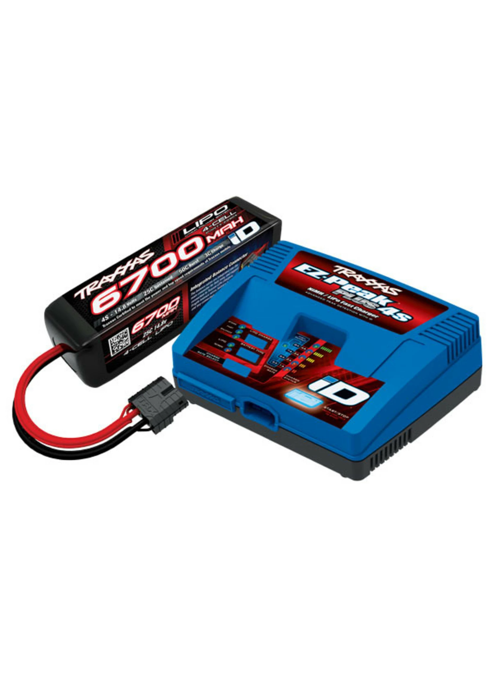 Includes: Battery/charger completer pack (includes #2981 EZ-Peak Plus 4s iD charger (1), #2890X 6700mAh 14.8V 4-cell 25C LiPo battery (1)