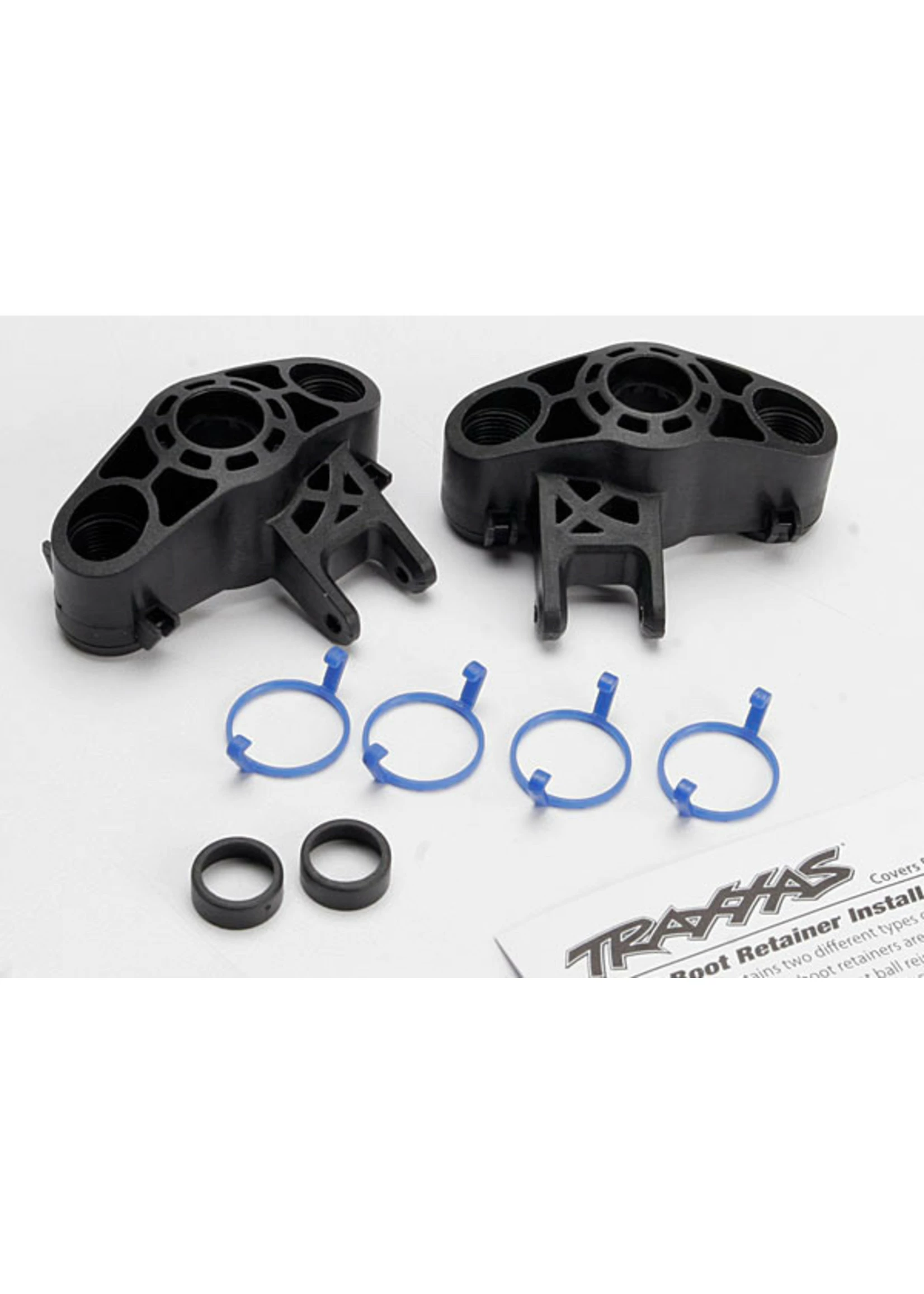 Includes: (4) Axle carriers, left & right (1 each) (use with larger 6x13mm ball bearings)/ bearing adapters (for 6x12mm ball bearings) (2)/ dust boot retainers
