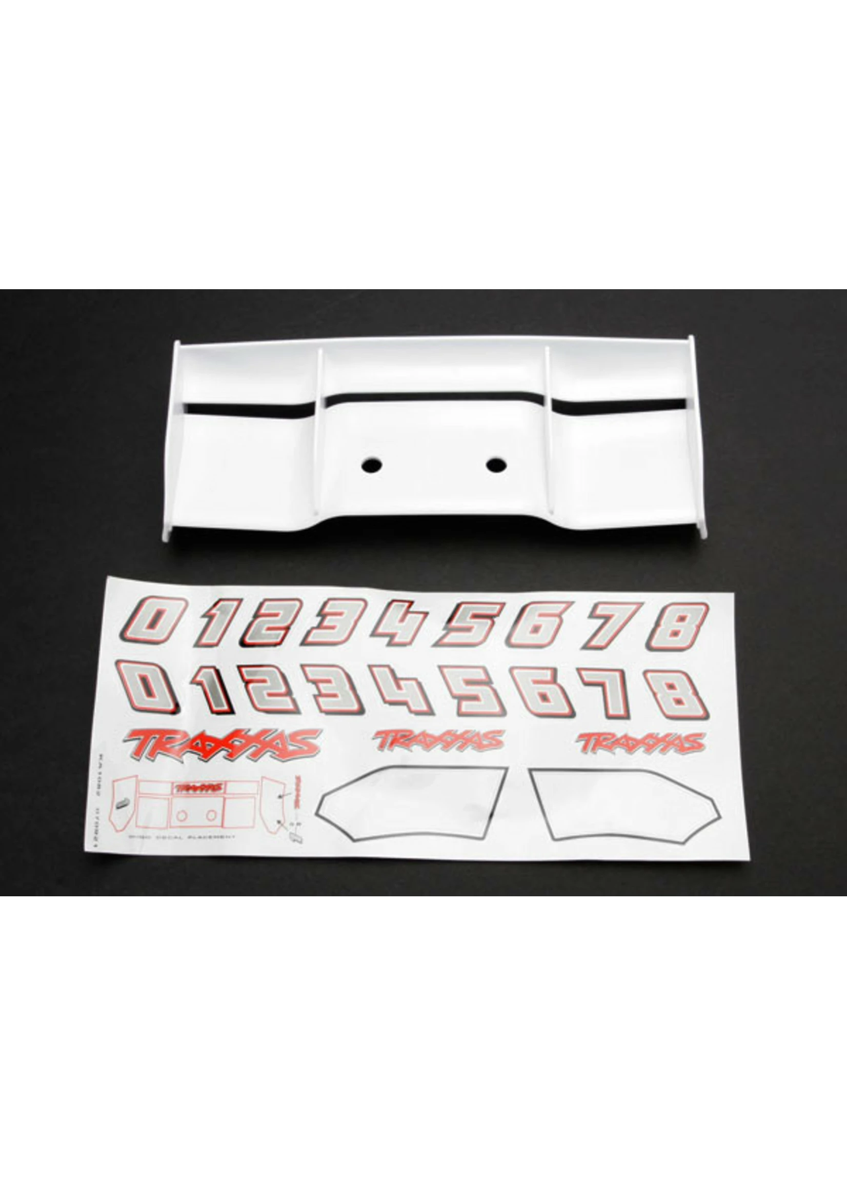 The Traxxas Revo wing and wing mount are the latest additions to the performance accessory line-up for the undefeated National Champion Revo 3.3. The combination of the adjustable deflection angle, wing height, and the unique wing design allow tuning options for any track condition and driving style. The wing mount kit includes the mount, hardware, and installation instructions. The wing is available in white, black, or with the Exo-Carbon finish.