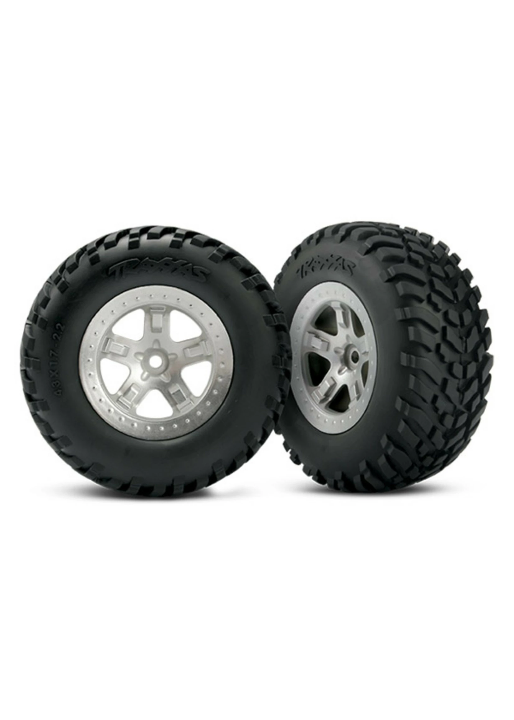 Traxxas 5873 – SCT Satin Chrome Beadlock Style Wheels / SCT Off-road Racing Tires