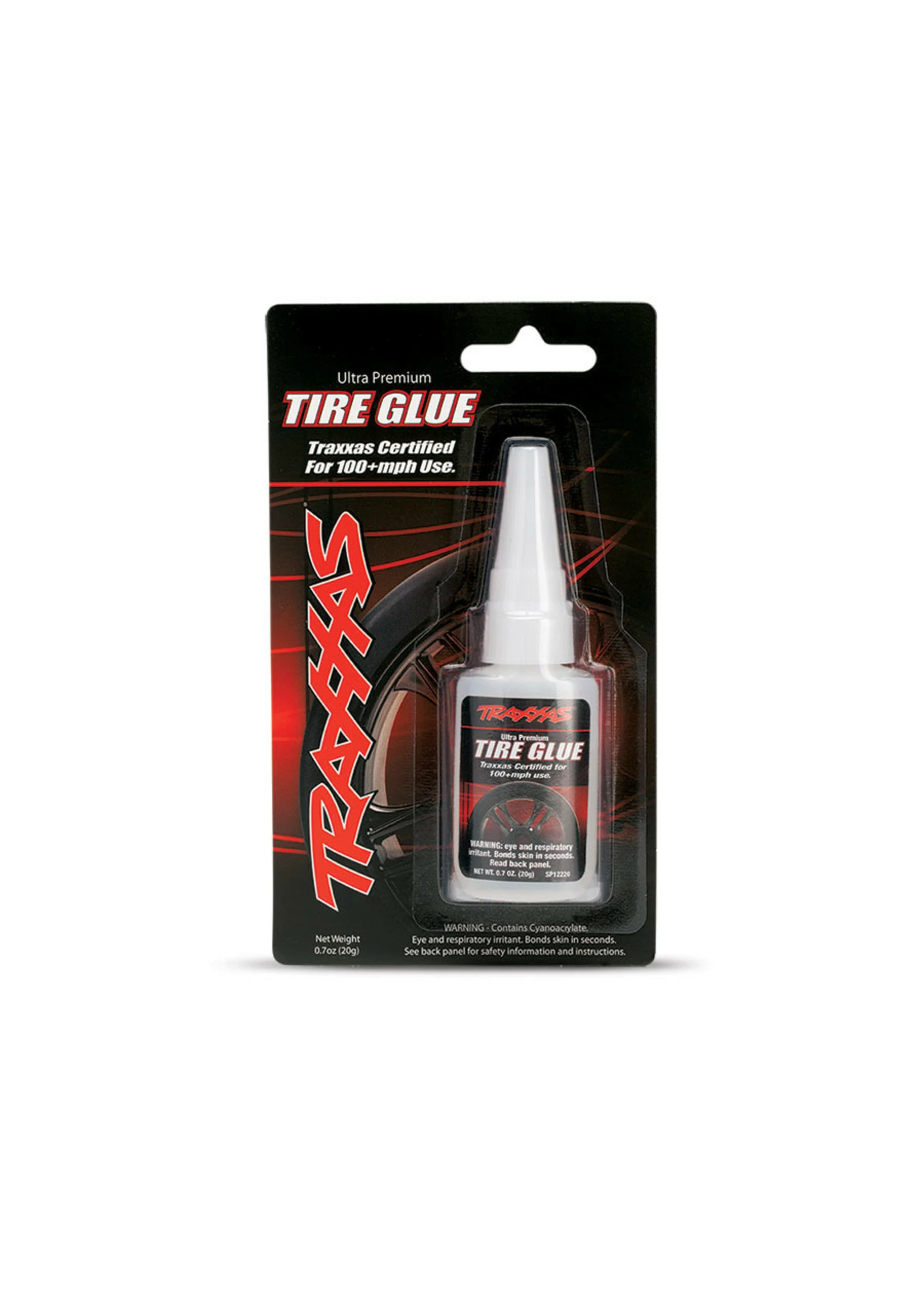 Only one tire glue is certified for use with the 100+mph XO-1: Traxxas Ultra Premium Tire Glue. The XO-1 relies on a high-strength tire bond to withstand incredible centrifugal forces at speeds in excess of 100mph. No other glue endures such high loads, which makes Traxxas Ultra Premium Tire Glue the ultimate adhesive for any tire and rim combination (and any other application that requires a high-strength bond).
