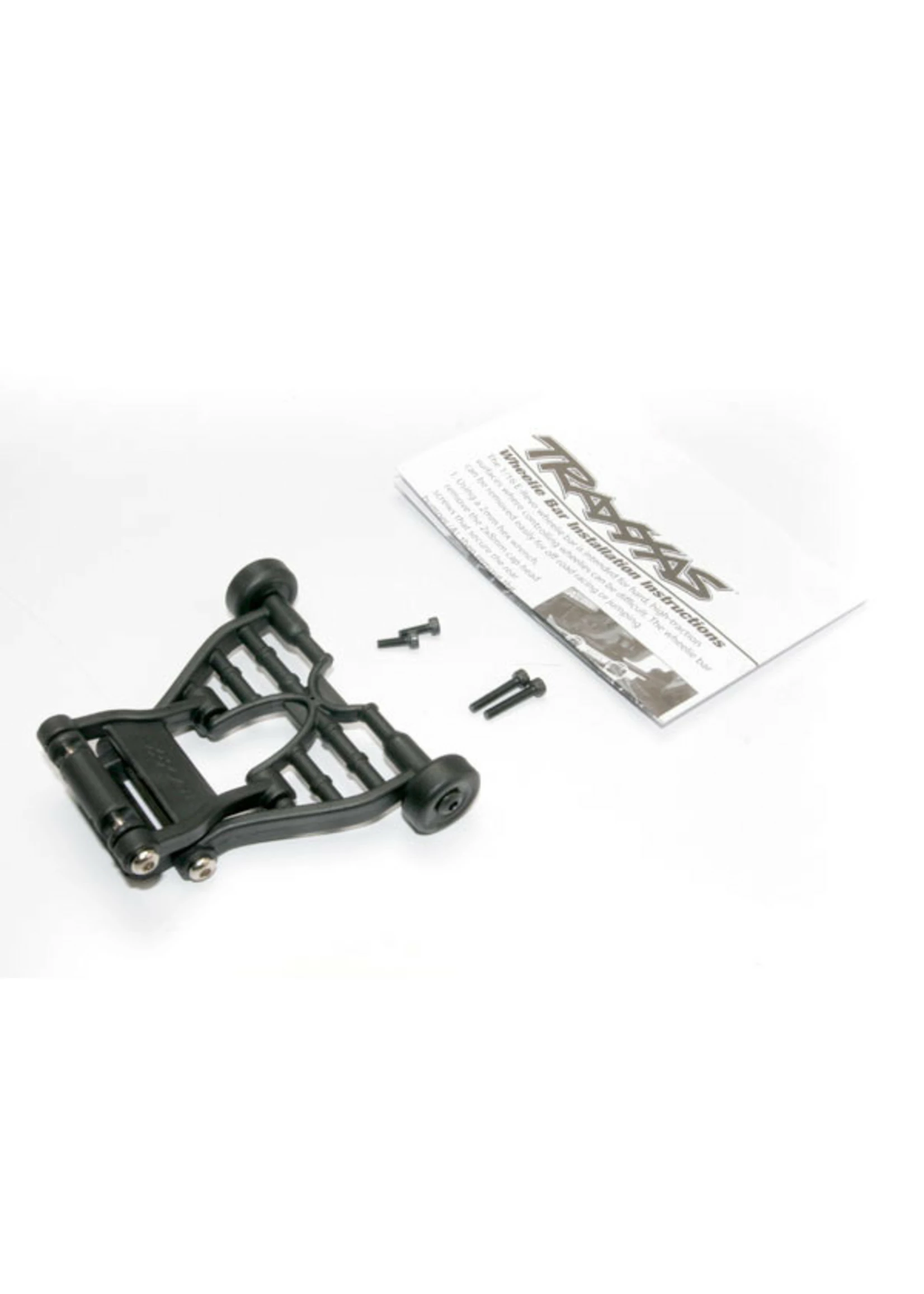 The unique patented Traxxas adjustable wheelie bar features four position adjustment, now in 1/16 scale. The 1/16 E-Revo wheelie bar is intended for hard, high-traction surfaces where controlling wheelies can be difficult. The wheelie bar can be removed easily for off-road racing or jumping.