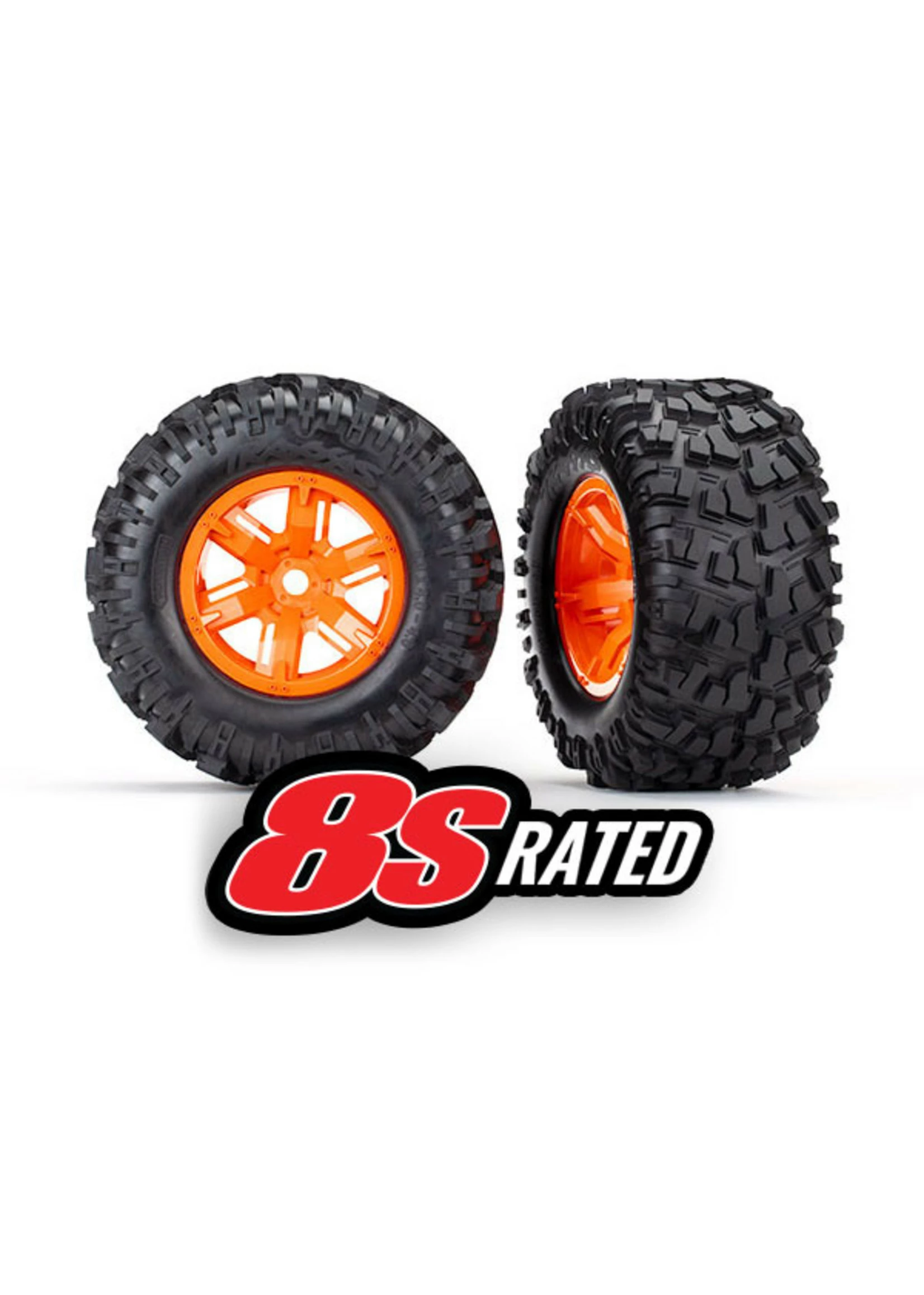 Includes: Tires & wheels, assembled, glued (X-Maxx® orange wheels, Maxx® AT tires, foam inserts) (left & right) (2)