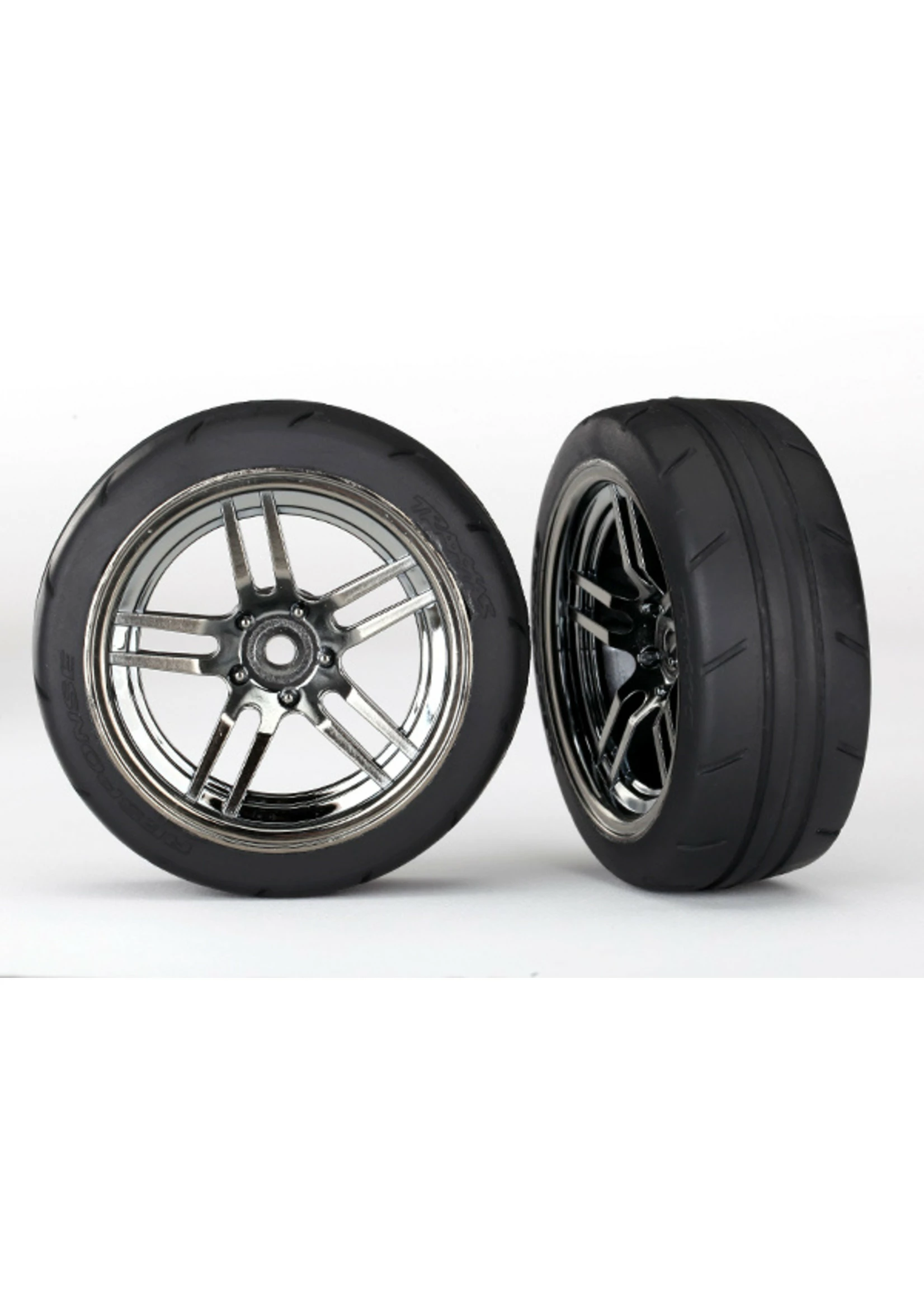 Traxxas 8373 – Split-Spoke Black Chrome Wheels / 1.9″ Response Tires