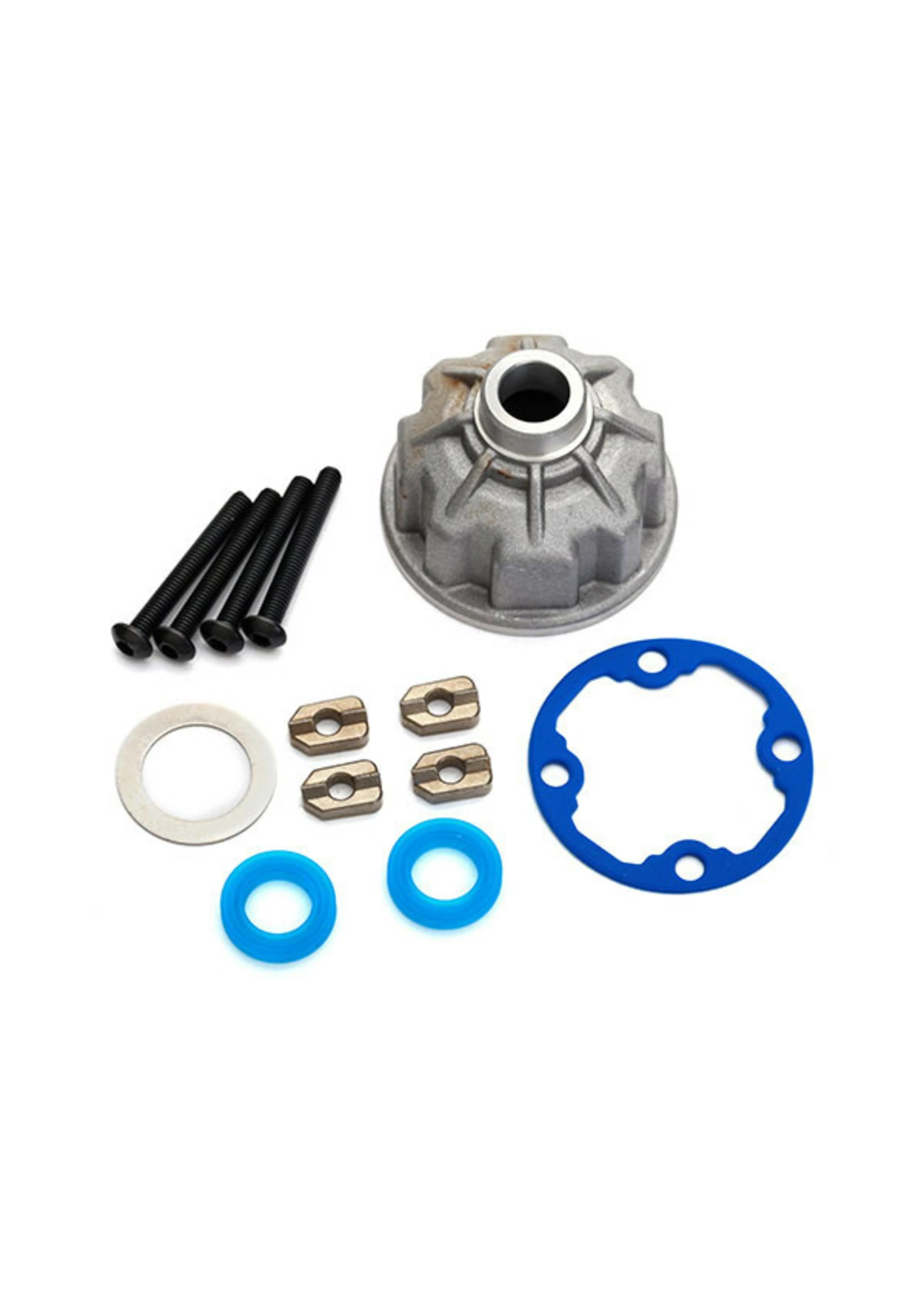 Includes: Carrier, differential (aluminum)/ x-ring gaskets (2)/ ring gear gasket/ spacers (4)/ 12.2x18x0.5 metal washer