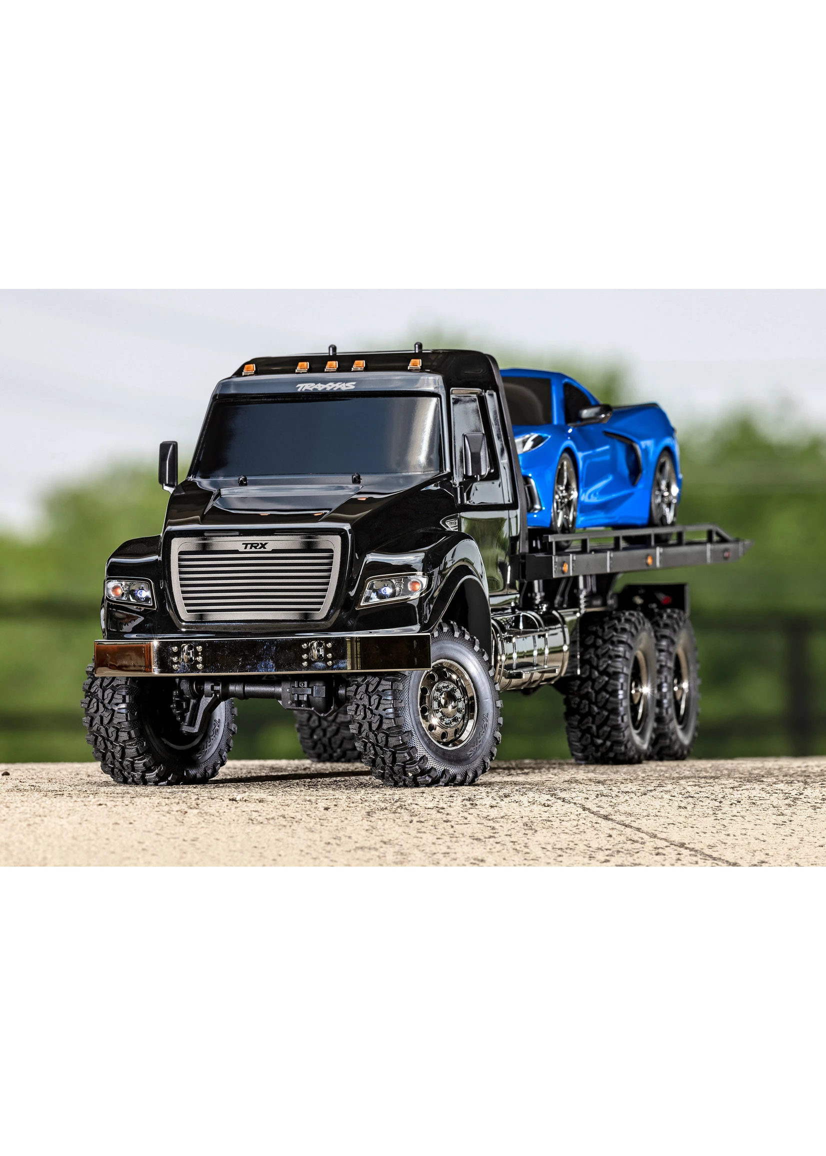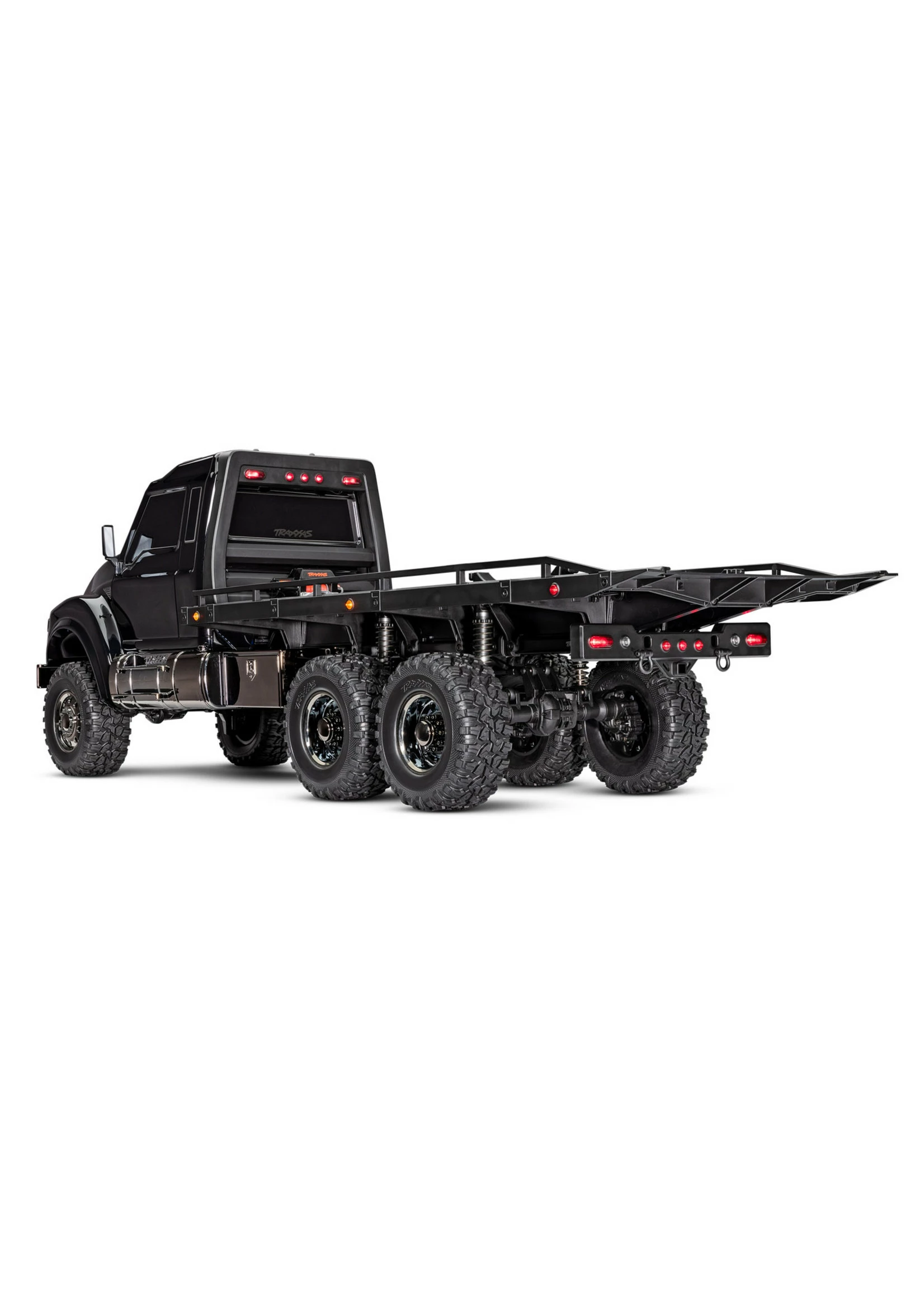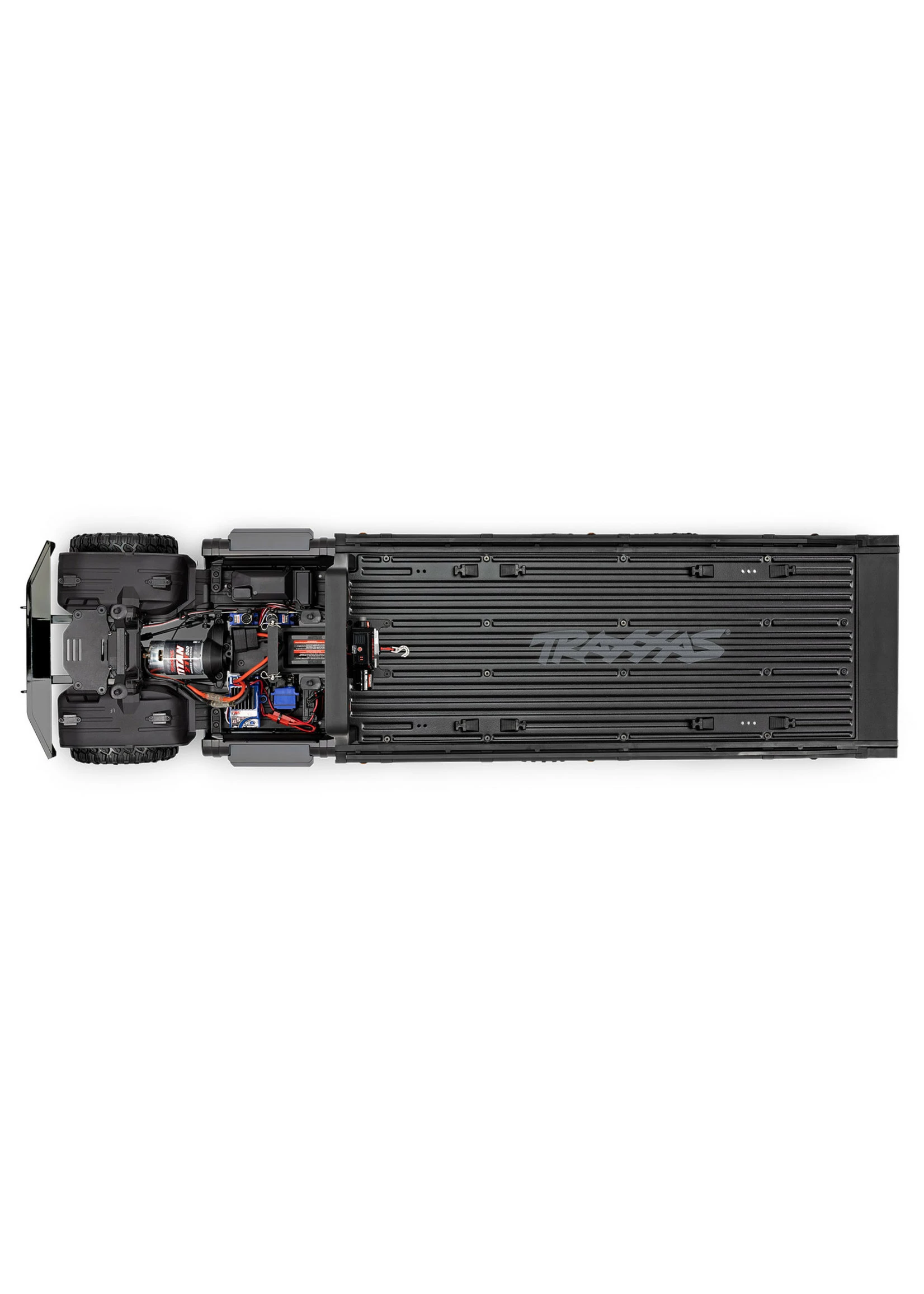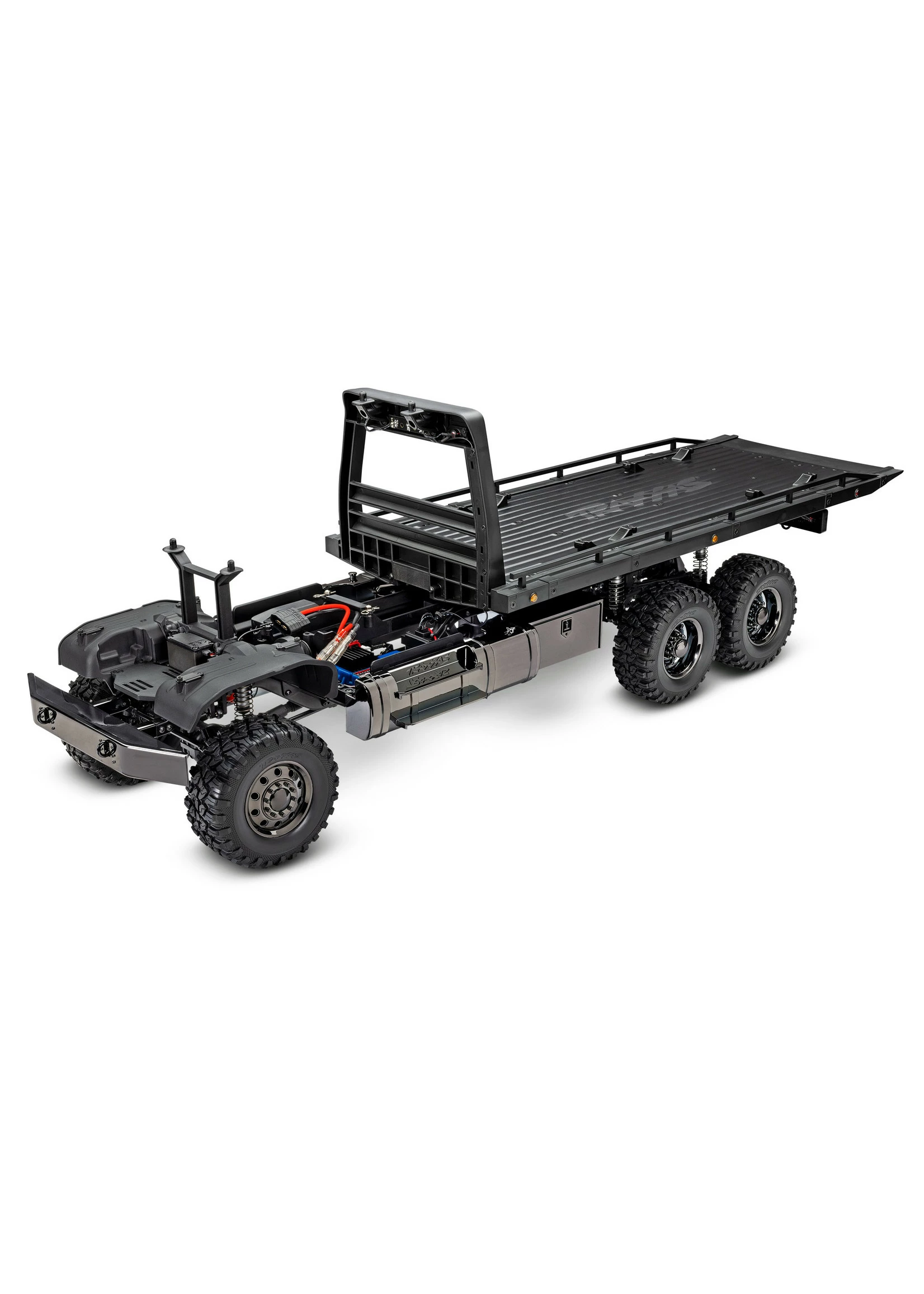 Based on the hugely capable TRX-6 platform, the RC Hauler is the biggest and baddest rig in the TRX lineup. The tough looks are backed up with even tougher performance. The rear bed features a working electric winch, adjustable wheel chocks, and tie-down bands to haul and display 4-Tec® models with style. A highly detailed LED lighting system and black-over-black chrome body accessories give the Hauler a tough, menacing look. The Ultimate RC Hauler is built Traxxas Tough™ with portal axles, high-low transmission, and T-Lock™ remote locking differentials. When you’re ready for big-scale RC fun, nothing comes close to the Traxxas Ultimate RC Hauler.
