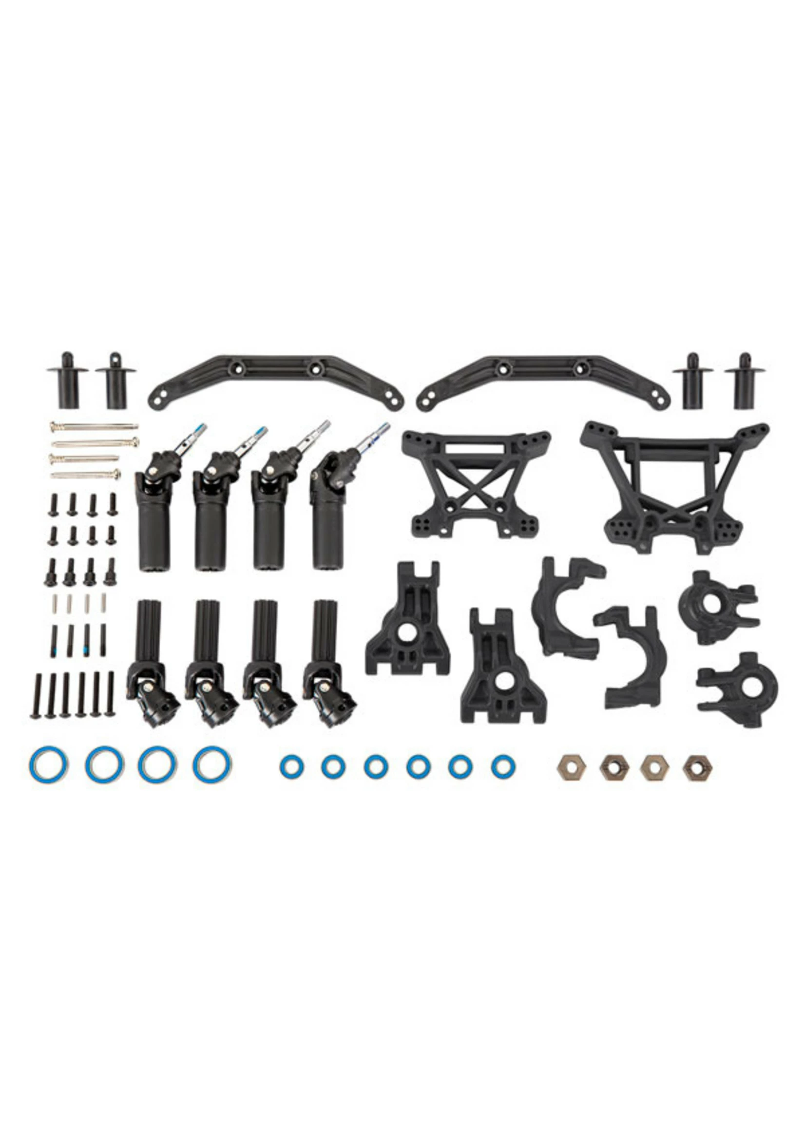 The Extreme Heavy-Duty Upgrade Kit transforms your already-tough Hoss® 4X4, Rustler® 4X4, or Slash® 4X4 into the ultimate bashing machine. Engineered for extreme brushless power systems, the kit includes a full complement of driveline and suspension parts designed to work together as a complete package. Whether you’re sending it at the skate park or preparing for a speed run, the Extreme Heavy-Duty Upgrade Kit is battle-hardened to withstand brutal punishment and come back for more.