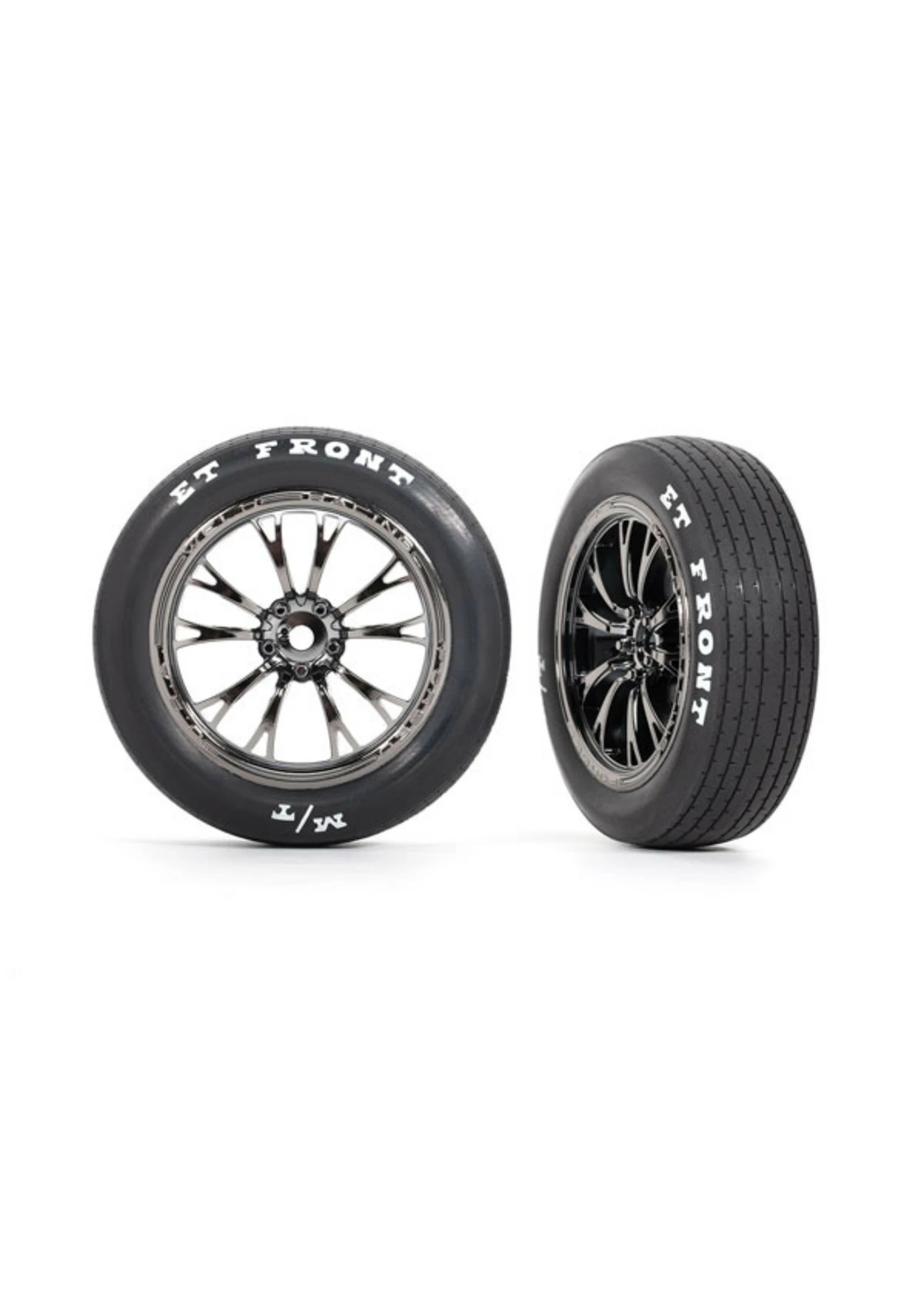 Includes: Tires & wheels, assembled, glued (Weld black chrome wheels, tires, foam inserts) (front) (2)